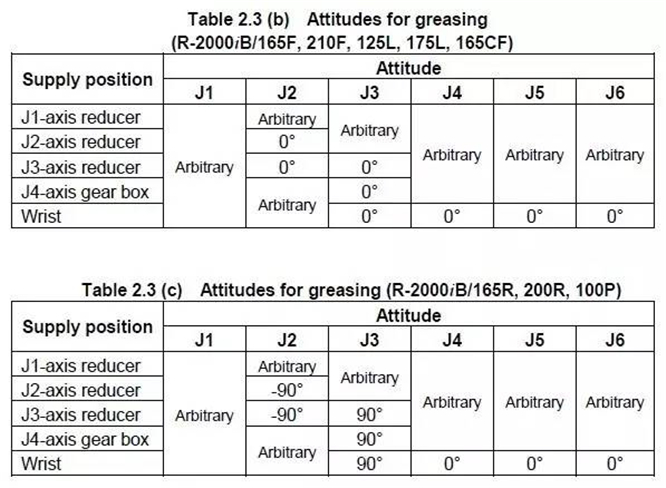 2. 機(jī)器人本體平衡缸兩側(cè)SHAFT每半年加注1次潤滑油。