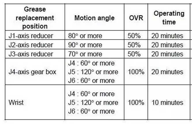 1. 當(dāng)正常使用的機(jī)器人運(yùn)行時(shí)間達(dá)到1萬小時(shí)或使用3年時(shí)需要更換本體減速機(jī)內(nèi)部潤滑油,根據(jù)機(jī)器人實(shí)際使用環(huán)境適當(dāng)縮短保養(yǎng)間隔周期。